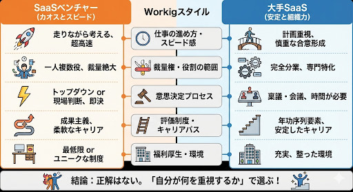 | 働き方 | SaaS企業は柔軟(リモート・裁量労働) |